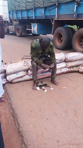 In the second picture below with money on ground in front of the policeman, he was doing so while trying to prove to the driver that he has enough money and not hungry enough to collect N30 from him.