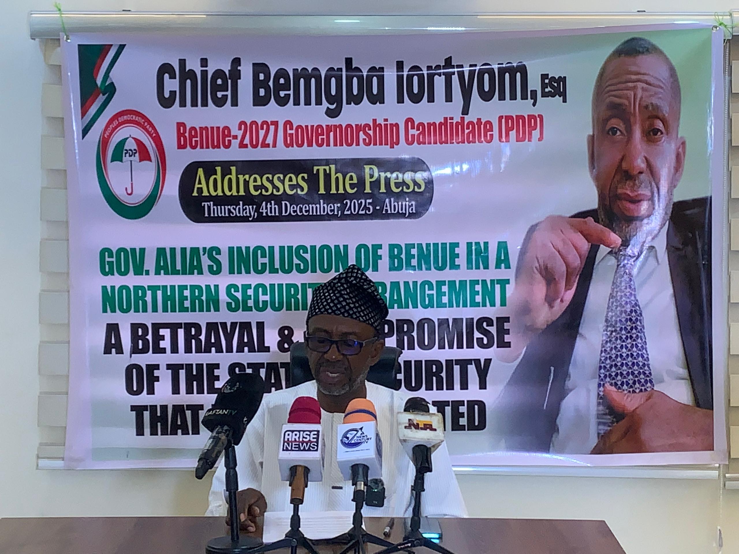 Prospective governorship candidate of the Peoples Democratic Party (PDP) in Benue State, Chief Bemgba Iortyom, has condemned the inclusion of Benue in the recently announced Northern Security Arrangement, describing it as “a dangerous compromise and a betrayal of the state’s safety and interests.”