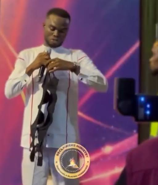 Evangelist Isaac Josiah, the lead pastor of Reclaimers Ministry in Benin City, Edo State, has stirred widespread debate online after a Facebook video showed him handing out clothing items bras, wrappers, pyjamas, and similar garments during a church service.