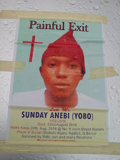 Suspected gunmen have murdered a 26-year-old Sunday Anebi, otherwise known as Yobo in Benue State.