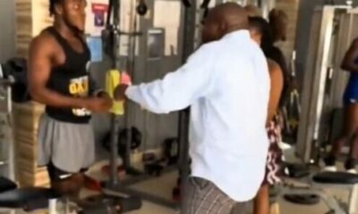 A tense scene unfolded at a fitness centre after an angry father reportedly showed up with police officers to apprehend a man he accused of impregnating...