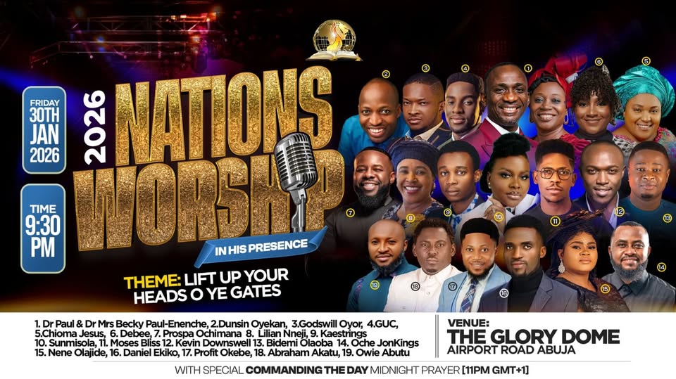 Gospel music lovers and worshippers from across Nigeria and beyond are gearing up for the 2026 Nations Worship In His Presence event at the iconic Glory Dome, Dunamis International Gospel Centre, Abuja.