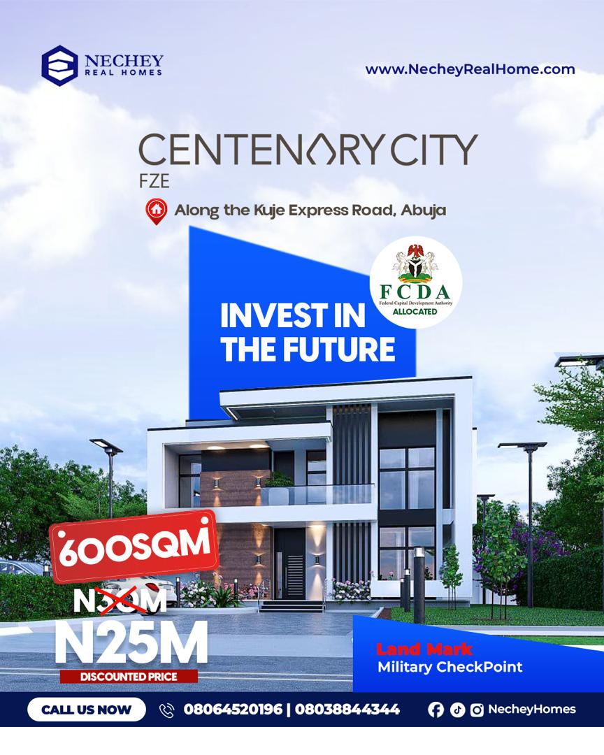 Fast rising real estate home, Nechey Real Homes FZE has announced a new investment opportunity at its prestigious Centenary City project, located along the Kuje Express Road, Abuja.