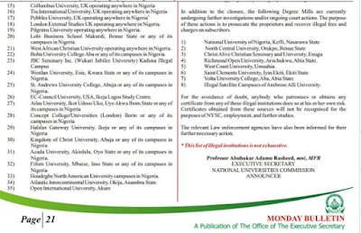 NUC warned parents, guardians and students to be aware of the universities that have not been accredited
