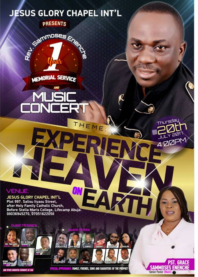 “I keep telling people that my husband and mentor Rev Sammoses Odiba Enenche lives on. We want the world to see that the legacy he left behind is moving on. Jesus Glory Chapel International is alive and would remain alive to the glory of God.