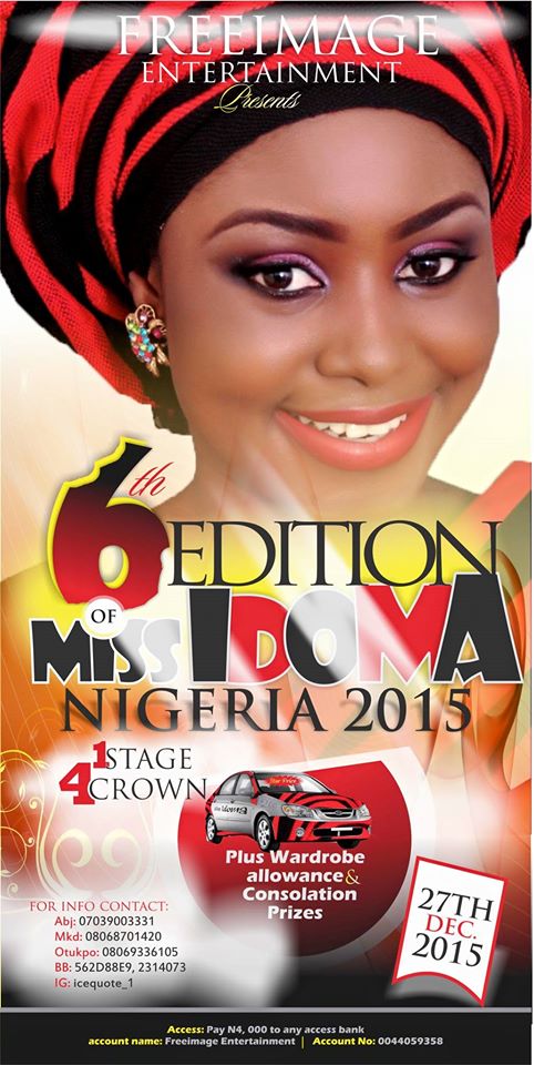 Come December 27, the ancient city of Otukpo, the ancestral powerhouse of Idoma community will literarily roar for the 6th edition of the Miss Idoma beauty pageant.