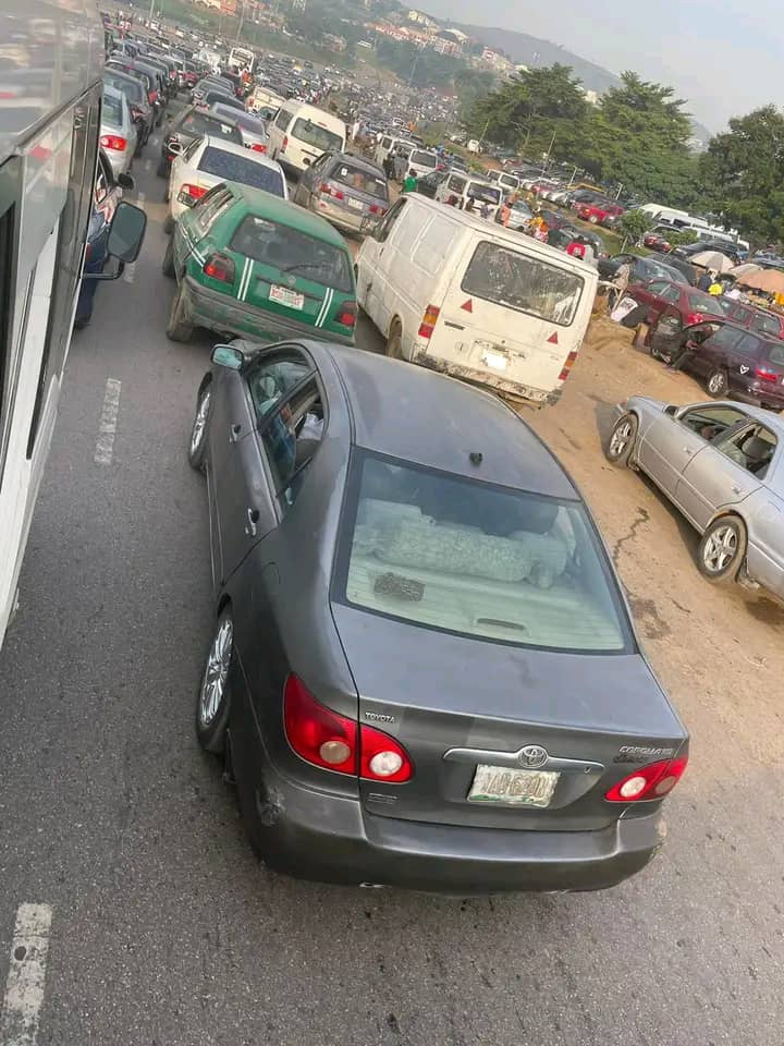 Motorists heading into the Federal Capital Territory (FCT) reported gridlock, with several lanes partially blocked by parked vehicles and early protest-related activities.