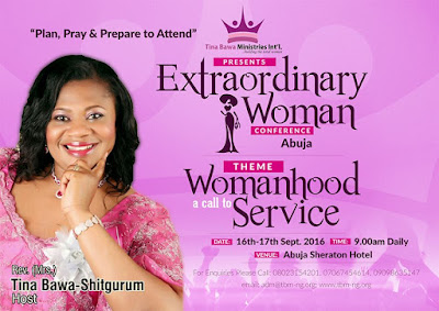 The two-day power-packed programme, tagged: Extraordinary Women Conference is slated for September 16 – 17, 2016 at Sheraton Hotel, Abuja.