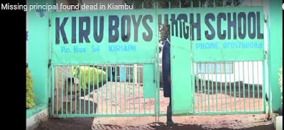 The body of Kiru Boys Secondary School Principal Solomon Mwangi is said to have been retrieved from the Kiahuria Dam in Kiambu County and taken to the mortuary.