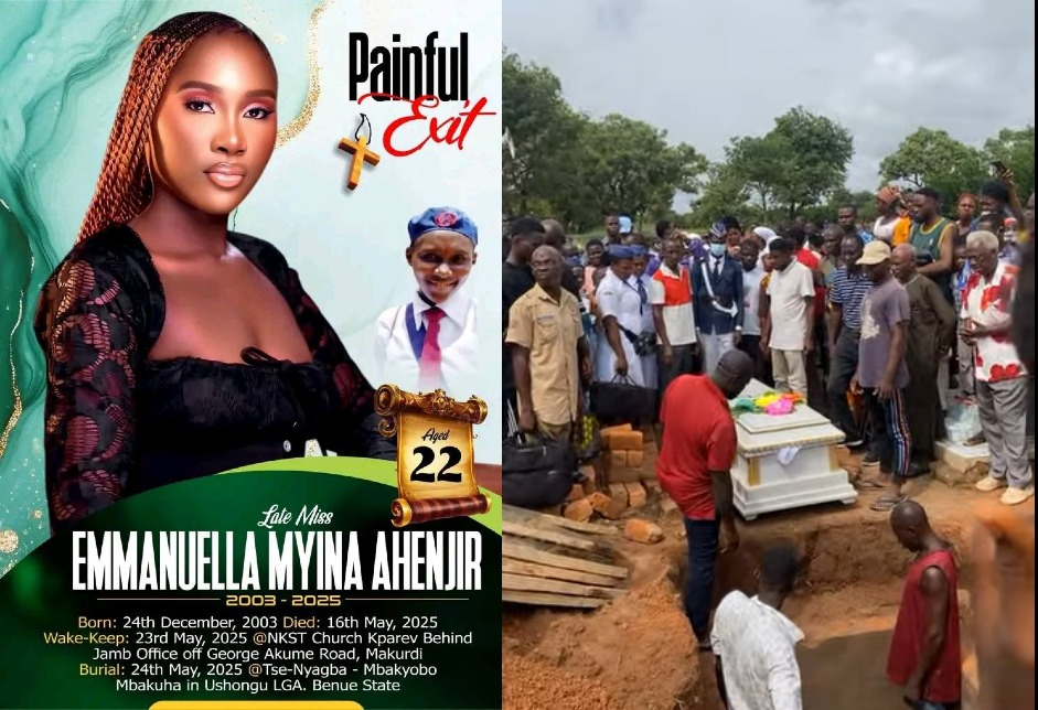 Emmanuella Ahenjir, a 23-year-old final-year student of the Federal University Wukari, has been laid to rest in her hometown of Ushongo Local Government Area, Benue State, following her tragic death during a police stop-and-search operation in Makurdi.