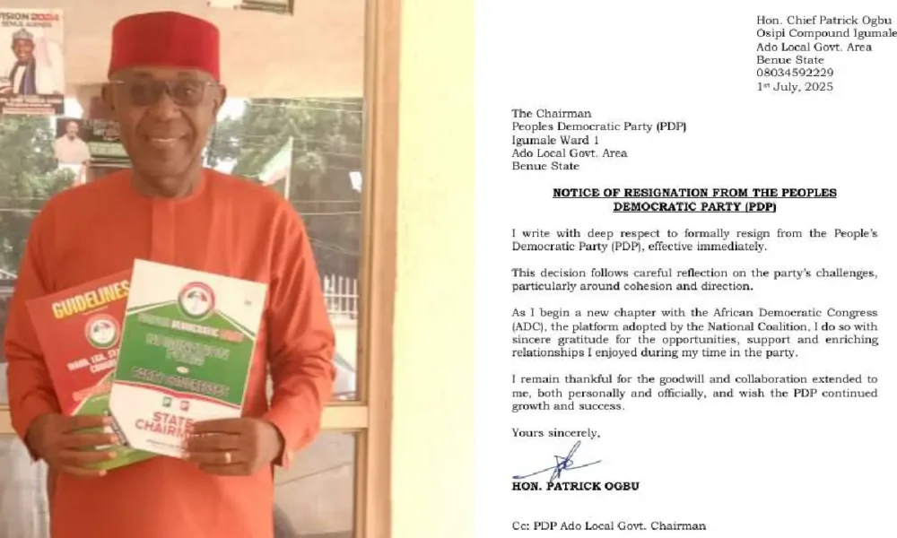 Former NTA Chairman, Patrick Ogbu resigns from PDP in Ado LGA, joins ADC