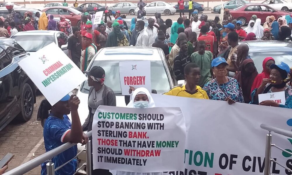 Hundreds of protesters on Wednesday stormed the corporate headquarters of the Central Bank of Nigeria (CBN) in Abuja, accusing Sterling Bank and other financial institutions of...