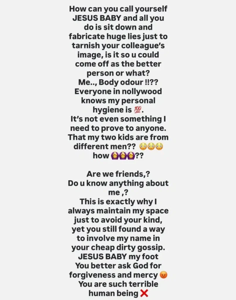 Nollywood actress, Lizzy Gold, has fired back at her colleague, Ekene Umenwa, over alleged damaging remarks made about her.